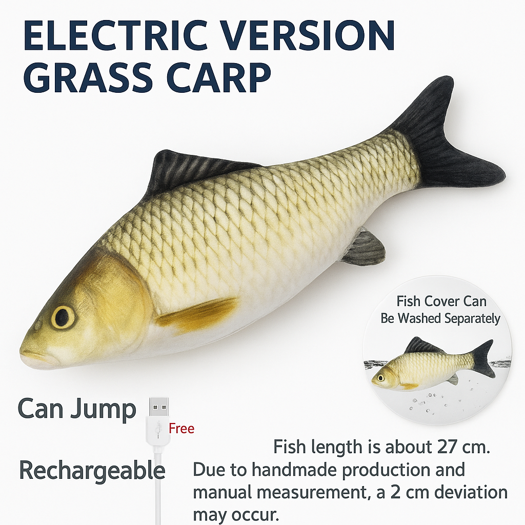 USB Chargeable: this toy is USB chargeable which saves you from the hassle and costs to replace batteries. USB cable is included in the package. The included chargeable motor is detachable for convenient cleaning of the plush toy. Use Instructions: Unzip the fish belly, flip the switch on, and then tap the fish belly to make the fish flop; When charging, the red light comes on; When fully charged, the red light goes out.